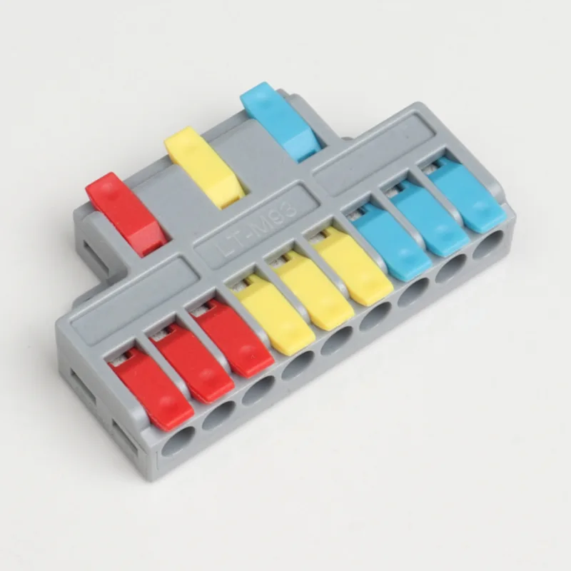 İki girişli dört çıkışlı Mini ekleme teli hızlı konektörleri, normal dağıtım kablolama terminali serimizden daha küçük bir şekle sahiptir. Mini versiyon, küçük su geçirmez kasaların içinde kullanılabilir. Kablolama yönünün farklılaşmasını sağlamak için farklı renkte tutma bölmelerinden yapılmıştır.