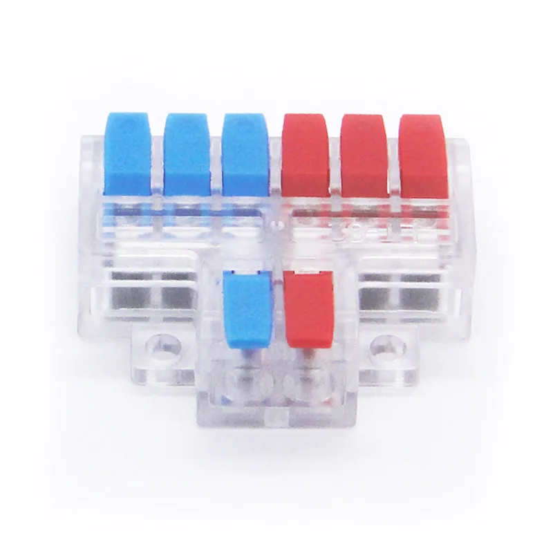 Modern elektrik ve otomasyon sistemlerinde devrelerin bağlantı ilişkileri giderek daha karmaşık hale gelmekte ve basit paralel hatlar veya tek yönlü dağıtım artık talepleri karşılayamamaktadır. CHTAR'ın çok telli giriş ve çok telli çıkış yapı konnektörleri olan yüksek kaliteli İki Giriş Dört Çıkış Ekleme Kablosu Hızlı Konektörleri bu sorunları çözebilir. Bağladığı tellerin boyutu 0,5mm² ile 6mm² arasında değişmektedir. Bu seri, maksimum 6mm²'lik büyük boyutlu kabloları bağlar. İki seçenek vardır: 2P ve 3P. Ana hat 2P ve 3P olarak yapılandırılır ve daha sonra iki veya üç yardımcı hatta ayrılır. Tek bir işlevin ötesine geçerek mühendislerin ikili güç kaynaklarının yedekli paralel bağlantısını, bağımsız sinyal bölmeyi veya farklı hatların tek bir fiziksel düğümde yakınsamasını ve entegrasyonunu elde etmesine olanak tanır. Bu, devrenin "kavşak noktasında" üç boyutlu bir ulaşım merkezi kurmaya eşdeğerdir ve enerji ve sinyallerin iletimini mümkün kılar!